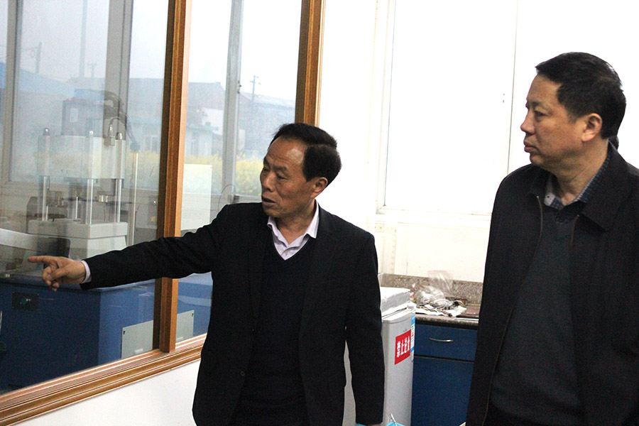 图二 董事长吴龙铁向周秘书长介绍各类研发、检测设备